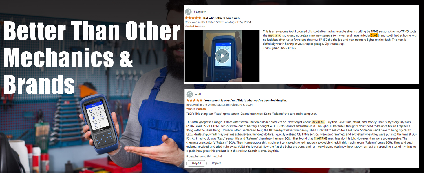 I currently have 4 cars in our family, all of which I provide maintenance and repair on, among many others that belong to friends and family. The one thing that I have not messed with up until now, were the TPMS sensors. The most I could do was to test the sensors with a scan tool and attempt to reset them. However, once they have failed, there is no resetting. More than likely, the battery is dead and all you can do is replace the sensors. I decided to eventually take on this job myself as I have access to tire changing equipment. But my primary concern at this time is to purchase a reasonably priced tool that would provide the ability to access TMPS data and provide additional functionality moving forward.When I purchase diagnostic equipment, I like to be somewhat future proof as much as possible. I also wanted a product that I could use in conjunction with my high-end scanner, which happens to be an Xtool (D9). Although I have had excellent experiences with Xtool products and customer service, I am completely open to purchasing from another company if it would best meet my needs, without a doubt. It just so happens that the Xtool product line continues to offer the best balance in value, customer service and capabilities, so I decided to try this product as well. I knew, based on experience, that if I had a problem, or any questions they would work with me to resolve them!So, as indicated, I as always, did a lot of research and found The Xtool TP-150 to be hands-down the most affordable and functional TPMS scanner/programmer in its class. I didn’t want to spend a lot of money on a TPMS scan tool, so I decided to purchase the Xtool product. The TP-150 comes in a compact cardboard storage box. It has a solid rubber case for protection that is also removable. This is a great feature that is robust enough to prevent damage if you were to accidentally drop the unit.The first step each time you use the device in my opinion, is to check for and complete any software updates. You can do this either by connecting the device to a computer through a USB port, or via wifi. It is much easier and more convenient to connect to wifi for any current and future updates that may be available. One of the features that attracted me to this Xtool device is that it offers lifetime (COST-FREE) updates! Some companies charge a fee.The TP-150 supports several regions and multiple car brands both domestic U.S. and other countries along with multiple languages. It has an audible beeper that is optional and can be deactivated. I chose to keep mine activated as it helps with testing to hear the noise prompts throughout the process. It also has an optional auto-power setting that can be deactivated or set at ranges from 3, 5, and 10 (minutes), or to not automatically shut off. I found the no shut off option to be more feasible for my usage. I’ll just need to remember to turn it off manually after I’m finished! Here is a rundown of the device’s features.Xtool TP-150 supports (5) different functions:Check: Allows you to check each tire by prompting you to walk around the vehicle and point the device at each valve stem, which is where the TMPS sensor is mounted. It provides a visual display of each tire location which makes the process fun and easy. The results display the sensor’s data, current tire pressure and the current battery life which is extremely helpful information to know.Diagnosis: This feature allows the device to connect to the vehicle through the OBD-2 port and scan the ECU (car’s computer) for any error codes. It provides the sensor ID, tire pressure reading, temperature and power to the sensors. You can also clear the TPMS error code that appears on your dashboard.Programming: Is a feature that allows you to clone your current sensors that need to be replaced and write the data to Xtool’s (TS-100) sensors. It will not allow you to program any other manufacturer’s sensor, however I found that the Xtool sensors are among the lowest priced dual frequency sensors available on the market. I was happy to find that this feature has (4) programming methods that cover every possible scenario.Relearning: Is only used for vehicles that require it and when you are needing to replace multiple sensors, or during tire rotation. Once the sensors are installed on the rims and mounted on the car, the Relearn function captures the data for all sensors as you walk around the vehicle, and stores this information based on the tire location. You can then connect to the vehicles OBD2 port and write the new sensor data to the vehicle’s ECU.Activating: This feature is very helpful if you choose to use universal aftermarket sensors, or OEM sensors that require a (relearning) process. It allows the TP-150 to capture the original sensor’s data and transfer it to the new sensor. This seems to work best if the tire locations have not changed.Sensor Information: Is a very useful feature that allows you to view the the sensor specification that are specific to your vehicle. This includes both OEM and Xtool (TP-100) sensor information.There is also a Recent Test feature that stores any vehicles that you have recently tested. This prevents you from having to conduct another vehicle search.In testing my various vehicles, I decided to compare the results with what I received with the Xtool D9 scanner, and the information was in alignment with the scanners diagnostic report as expected. In addition, the TP-150 provides the current tire pressure reading, and level of battery life available. I found that for my son’s Honda Accord, it showed that the right-side front TPMS sensor was at the end of its lifespan and will need to be replaced in the near future, although the other (3) were still good. With the late model Mercedes, I found that all sensors were functioning and that the battery life was optimal as well..One of the features that I/you would likely use most often, would be having the ability to use this device 